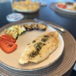 As for the side dish, vegetables pair perfectly with cod fish. I grilled vegetables that I always have in my fridge. Other side dishes that work well: