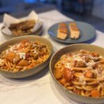 Add gochujang, tomatoes, tomato paste and pasta water. Mix well and let it simmer for 1-2 minutes.
